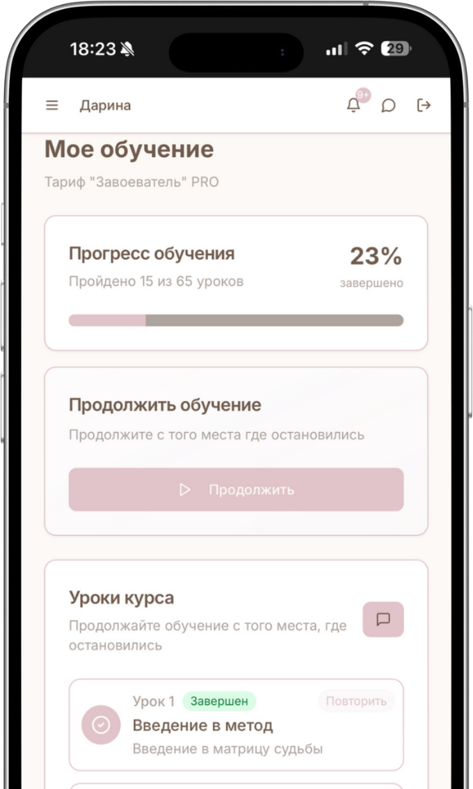 Обучение проходит на нашей собственной образовательной платформе — удобной, современной, с личным кабинетом, прогрессом, материалами и всеми инструментами для комфортного обучения.